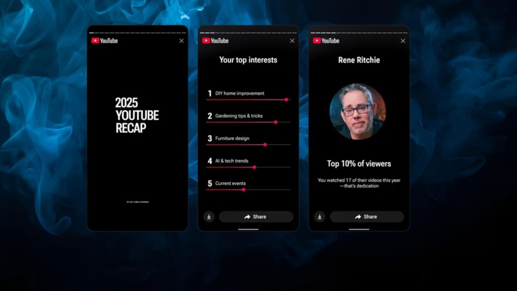 Some music-related stats will appear in the main YouTube Recap, such as your top artists and most-played songs, but this doesn’t replace the existing YouTube Music Recap. The music app will continue to offer its own standalone look-back covering songs, artists, genres, and podcasts, so users essentially get two separate roundups, one for video and another for purely audio habits.