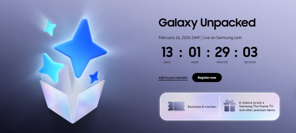 Samsung’s teaser image prominently features the Galaxy AI logo, emerging from a prism-like cube. The short animation released alongside the invite reinforces that AI will play a central role in the S26 launch.