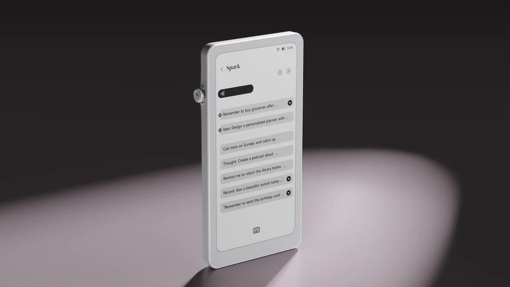 The display uses an E Ink Carta 1200 panel with 300 PPI, paired with a front light for reading in low-light conditions. The standout feature, though, is the Smart Dial on the side. It can be used to adjust brightness on the fly. Additionally, with a press, it can trigger shortcuts like recording voice memos or launching the built-in AI assistant.