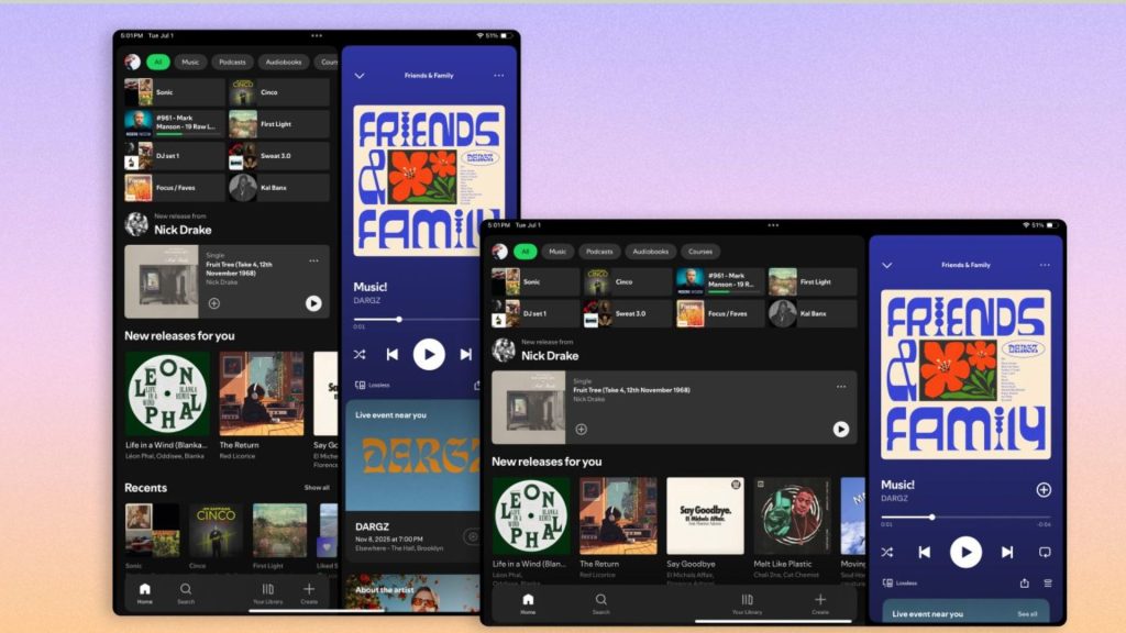 The new layout introduces parallel browsing. This lets you keep music or video playing on one side of the screen. Meanwhile, you can explore playlists, albums or podcasts on the other side. It’s a small shift that makes the app feel far more natural on bigger displays.